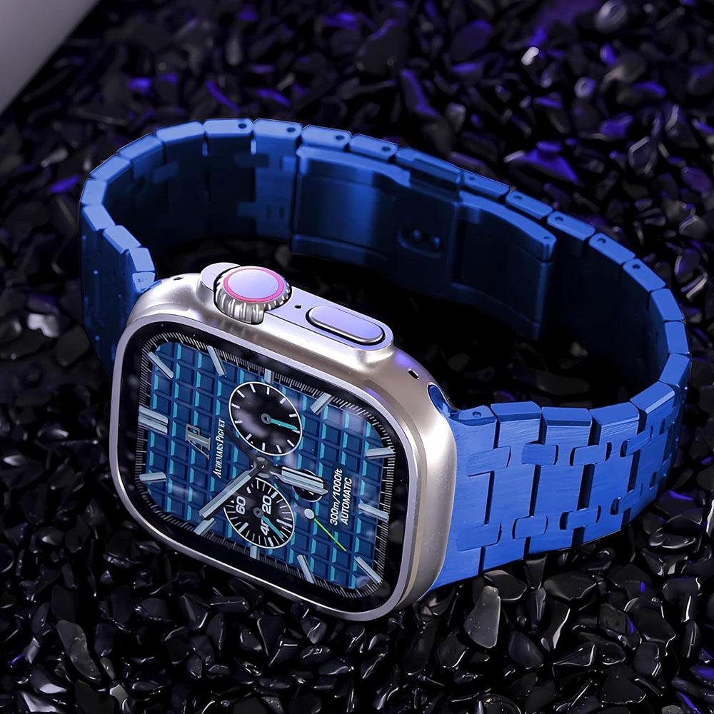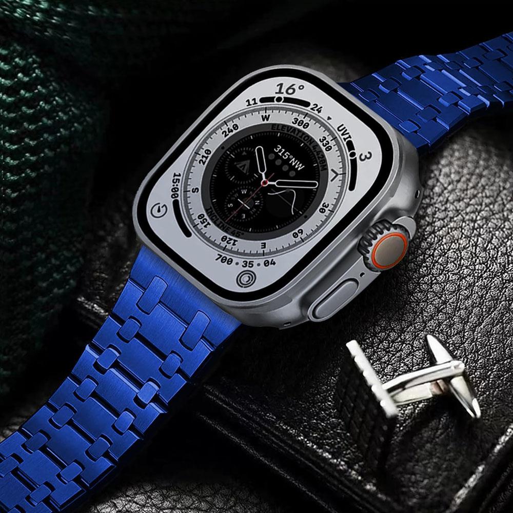 السوار Levelo RoyalLink مصمم ليتناسب مع مجموعة متنوعة من ساعات Apple Watch بما فيها العلب 49 مم، و45 مم، و44 مم، و42 مم. هذا التوافق يجعله مناسب لجميع أنواع الساعات التي تمتلكها.