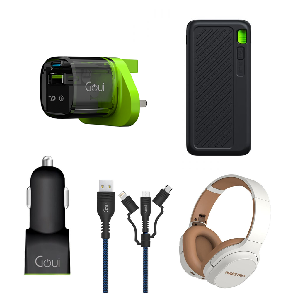 · نوع الكابل: كابل USB متنوع يضم موصلات مثل Micro USB و USB Type-C و Lightning.