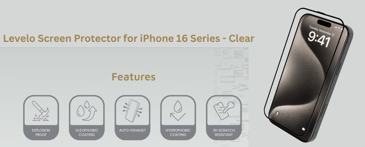 استمتع بحماية فائقة لشاشة جوالك مع استكر حماية Levelo الشفاف لأجهزة ايفون 16