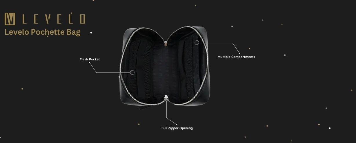 تألق مع حقيبة اليد العصرية من Levelo المصنوع من الجلد عالي الجودة مع مساحة واسعة لتخزين جميع أغراضك، مع تقسيم داخلي يساعدك على التنظيم بشكل عملي، مع حزام مطاطي وقبضة يد مدمجة.